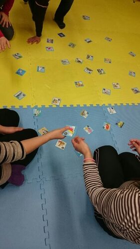 今日のイベントはカルタ大会。 札を読んだと同時にバトルが始まりました。 キラーン スタッフも本気です 受付にあったUFOキャッチャーの おもちゃも気になります。